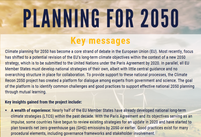 Climate planning for 2050 has become a core strand of debate in the European Union. Focus has shifted to a potential revision of the EU’s long-term climate objectives within the context of a new 2050 strategy, which is to be submitted to the United Nations under the Paris Agreement by 2020.