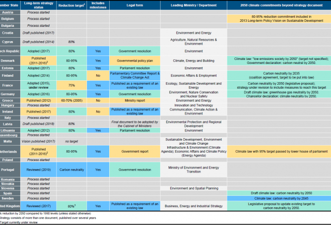 Long-Term Climate Strategies Matrix is a living document that aims to capture existing information on the ongoing processes of long-term climate strategy developments across the EU Member States.