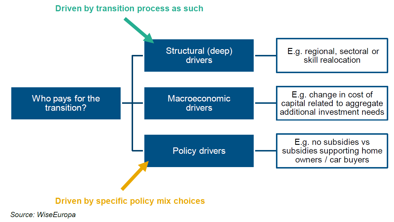 In light of the IPCC report on Global Warming of 1.5°C and using the targets of the Paris Agreement as a common point of reference, there is a clear need to accelerate policy efforts leading to reduction of greenhouse gas emissions. Their successful implementation, however, requires social acceptance, which, in turn, is dependent on distributional impacts that climate action may have on different types of economic actors, sectors and geographies. The aim of this note is to present the drivers of the transition costs as well as available analytical tools and approaches that enable the quantification of the distributional effects of the long-term climate policies.